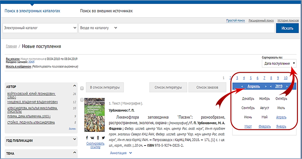 Самостоятельно Вы можете отслеживать новые поступления книг в Электронном каталоге на сайте библиотеки.