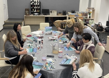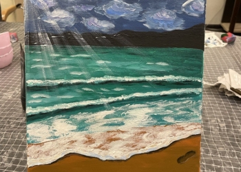 Вместе со специалистом зала искусств Анастасией Худяковой участники мастер-класса поэтапно создали морской пейзаж своими руками.