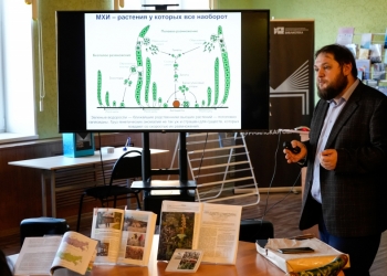 Евгений Боровичев, кандидат биологических наук, директор Полярно-альпийского ботанического сада-института им. Н. А. Аврорина, заместитель генерального директора КНЦ РАН по научной работе, выступил с лекцией «Мхи и лишайники – аборигены Арктики». Гости библиотеки вместе с лектором разбирались в родстве, строении и непростой жизни этих растений.