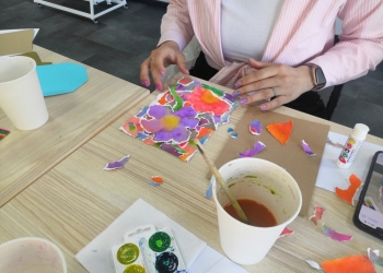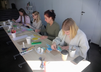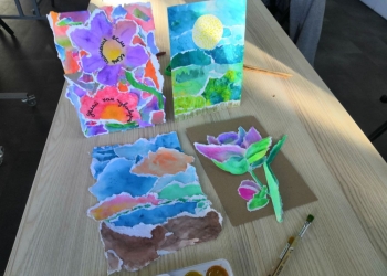 Под приятную расслабляющую музыку посетители рисовали причудливые узоры на акварельной бумаге, выбирая природные цвета: синий, зелёный, жёлтый. Мастер-класс прошёл в комфортной дружеской атмосфере, художники помогали друг другу, делились своими заготовками. После медитативного рисования участники занятия разрывали бумагу и выкладывали таким образом, чтобы получился пейзаж.